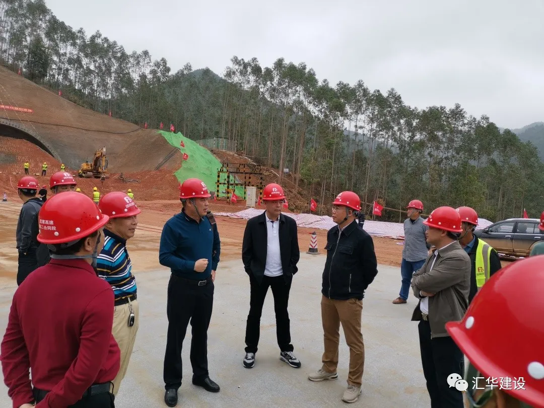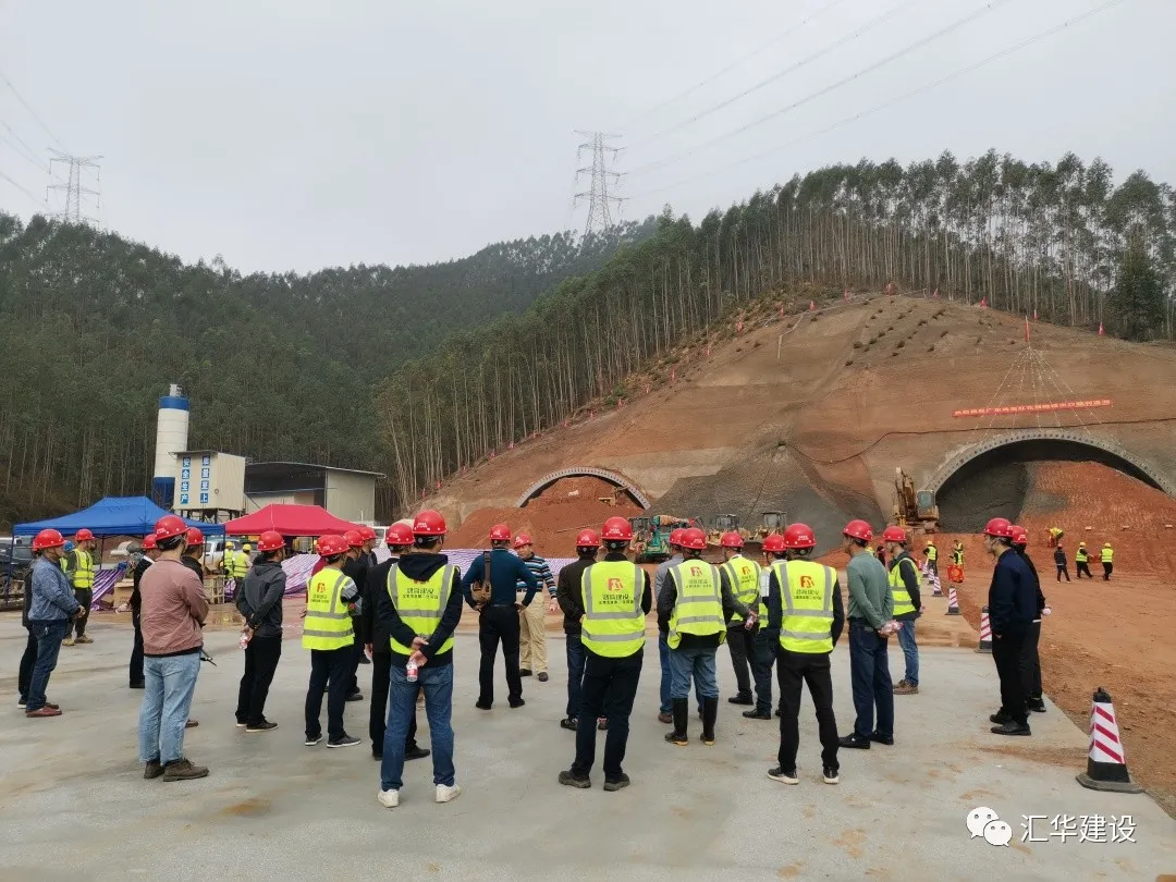 2021年3月6日,匯華集團董事長麥照華先生、惠龍高速中心實驗室領導、總監辦領導、各施工班組老板及現場主管、汝湖鎮政協肖主席、拆遷辦邱主任和大良村委高書記等人出席惠龍3標紅花頂隧道出口左洞進洞儀式。