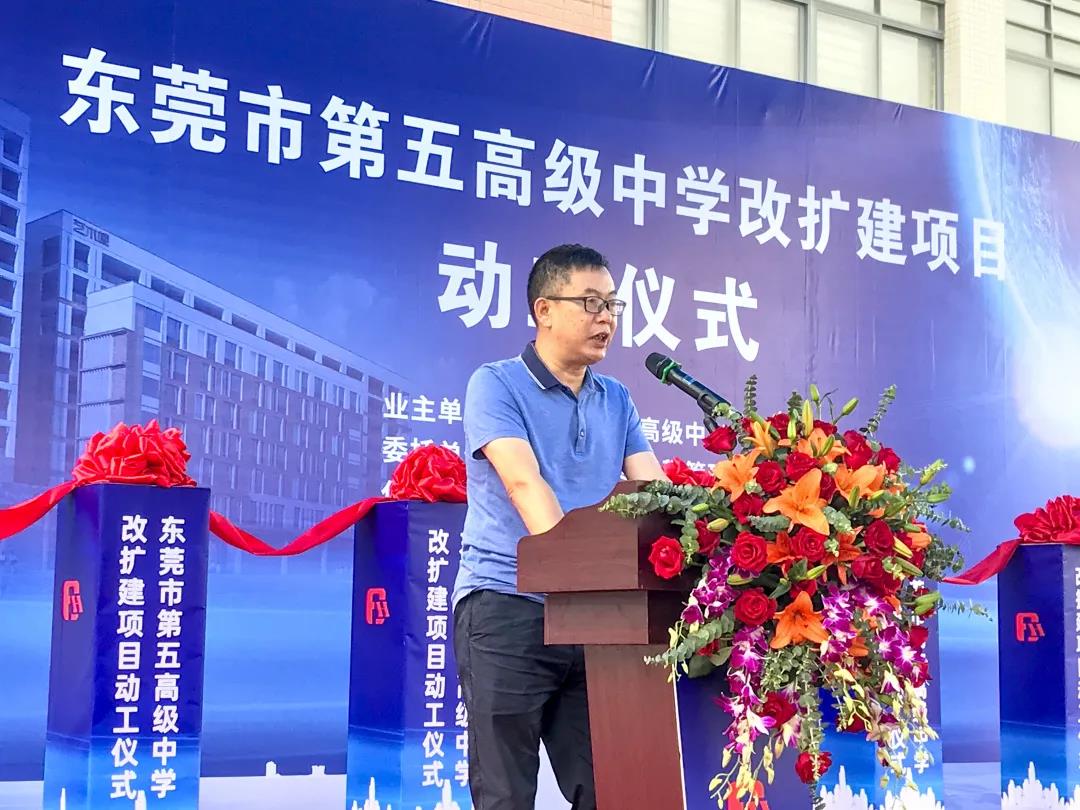 領(lǐng)導(dǎo)致辭 在東莞市第五高級(jí)中學(xué)改擴(kuò)建項(xiàng)目動(dòng)工儀式上,廣東鴻高建設(shè)集團(tuán)有限公司代表劉海軍先生、東莞市第五高級(jí)中學(xué)校長(zhǎng)楊志堅(jiān)先生、東莞市萬(wàn)科房地產(chǎn)有限公司代表吳學(xué)昌先生、東莞市城建工程管理局四級(jí)調(diào)研員李立新先生等領(lǐng)導(dǎo)先后致辭,并與廣東匯華建設(shè)集團(tuán)有限公司副總經(jīng)理廖志峰先生等嘉賓一起為此次改擴(kuò)建項(xiàng)目剪彩。
