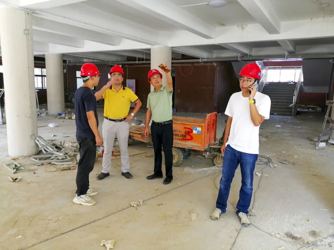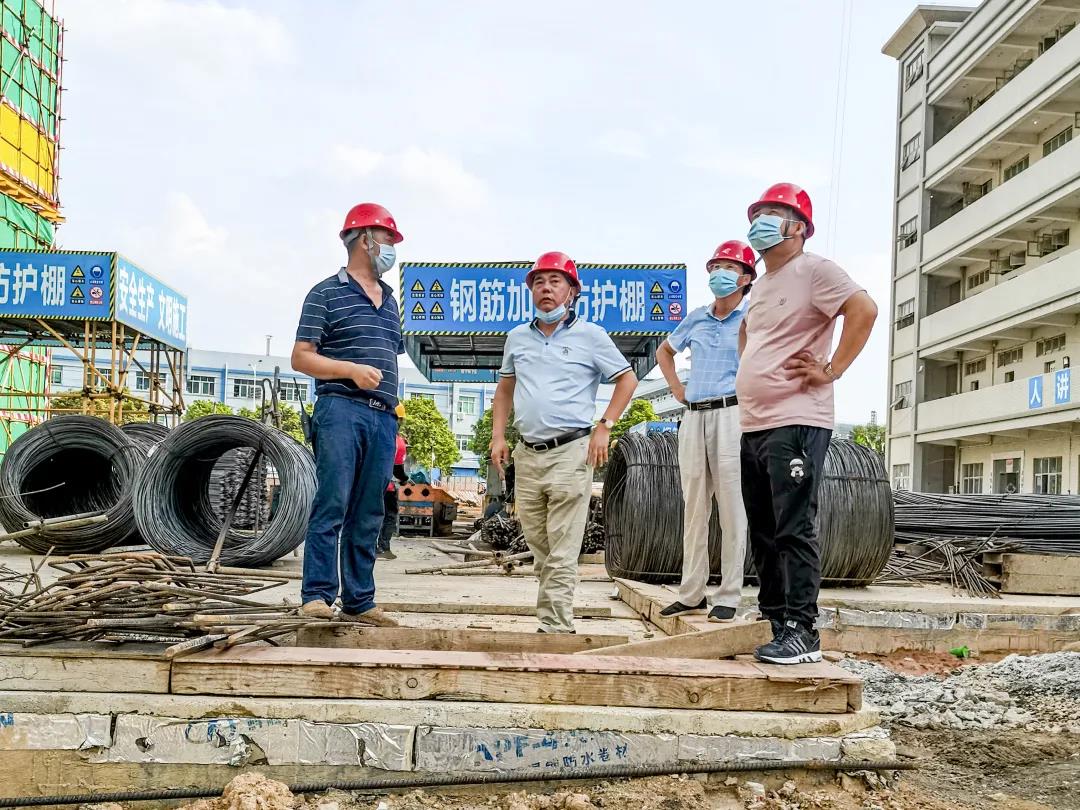 6月17日,茶山鎮重點辦領導到茶山中學項目檢查指導,匯華集團副總經理廖志峰陪同檢查,并為茶山鎮重點辦領導講解項目施工情況。